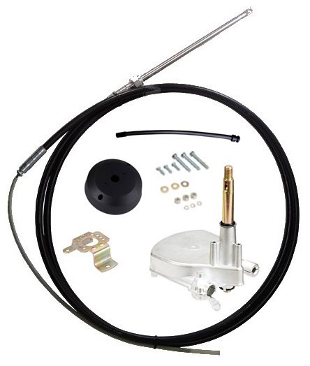 Sistema de direção contendo caixa Big-t + bezel + cabo de direção teleflex. Ideal para utilização em barcos com motorização até 220 HP Cabo e caixa com sistema de engate rápido (Quick Connect)