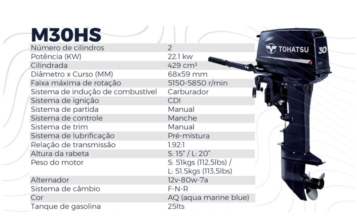 MOTOR DE POPA TOHATSU 30 HP PARTIDA MANUAL