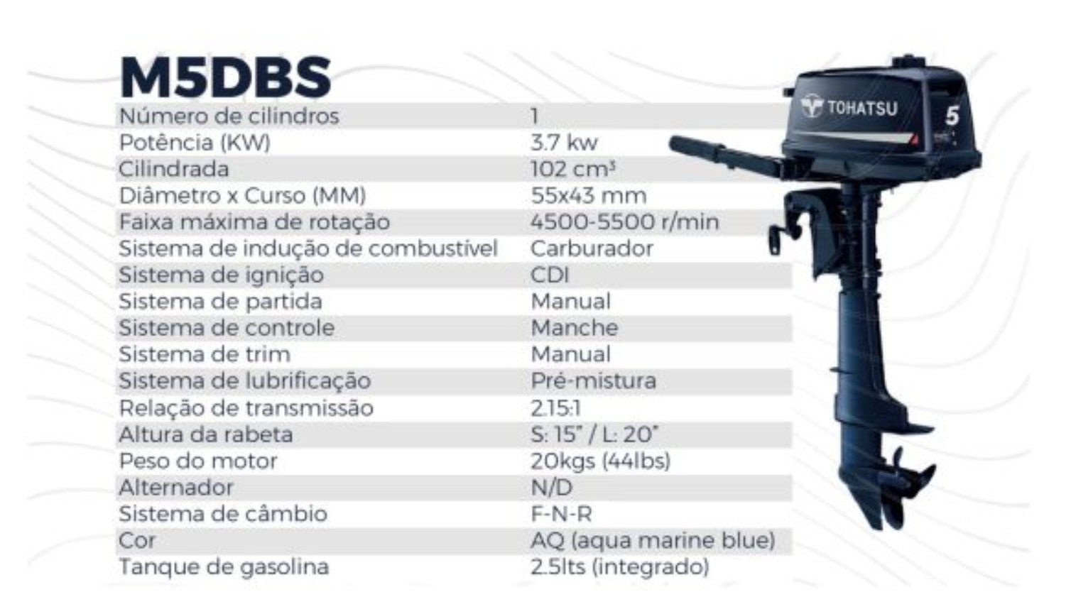- 01 Motor de Popa Tohatsu 5HP 2 Tempos M5BDScom hélice