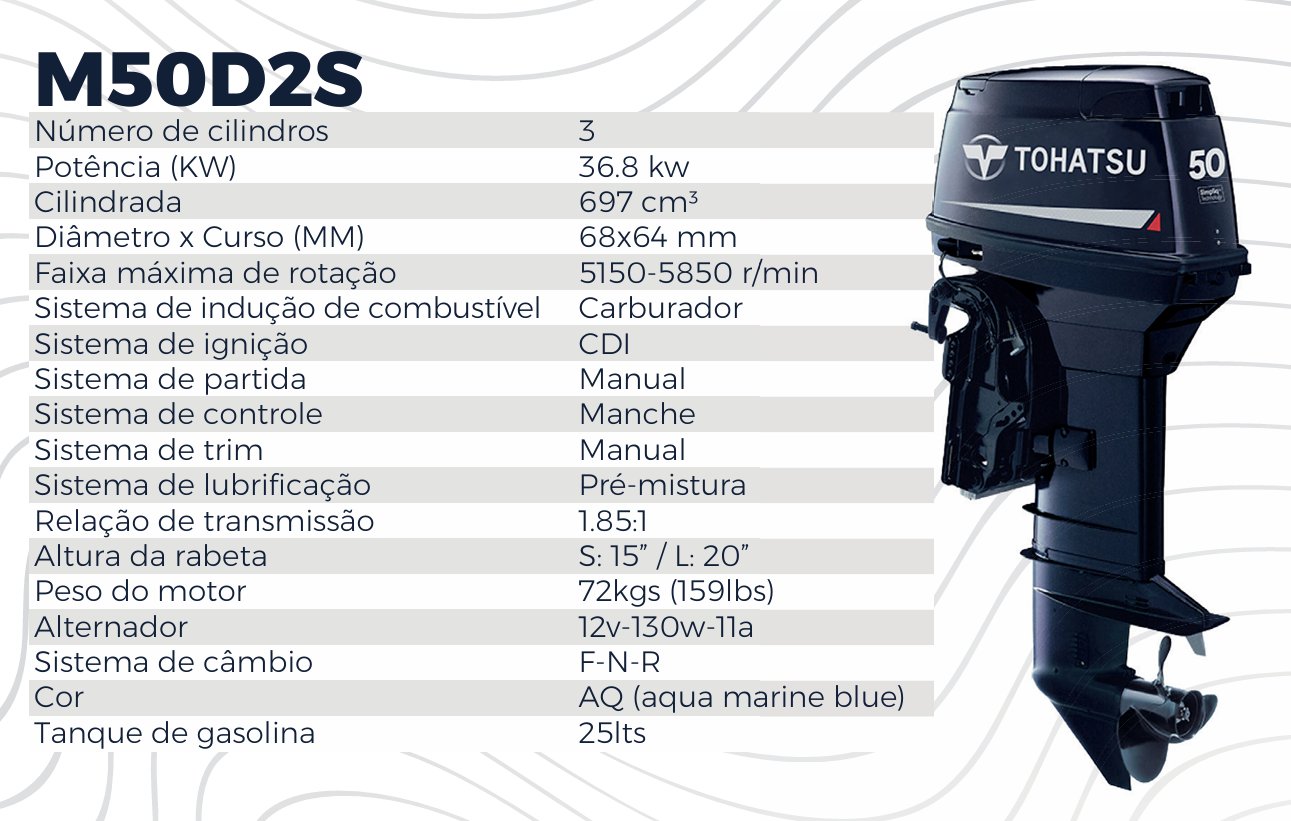 MOTOR DE POPA TOHATSU 50 HP PARTIDA MANUAL